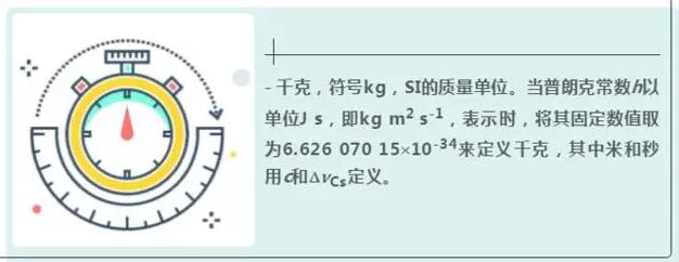 - 千克,符號(hào)kg,SI的質(zhì)量單位。當(dāng)普朗克常數(shù)h以單位J s,即kg m2 s-1,表示時(shí),將其固定數(shù)值取為6.626 070 15′10-34來定義千克,其中米和秒用c和DnCs定義。