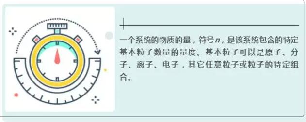 一個(gè)系統(tǒng)的物質(zhì)的量,符號(hào)n,是該系統(tǒng)包含的特定基本粒子數(shù)量的量度?;玖W涌梢允窃?、分子、離子、電子,其它任意粒子或粒子的特定組合。