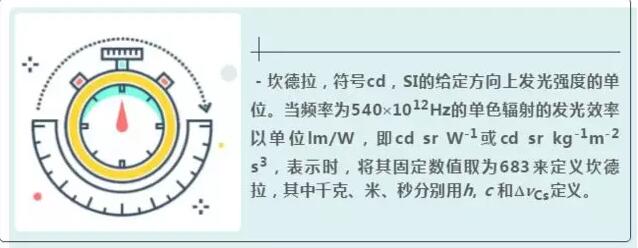 -坎德拉,符號(hào)cd,SI的給定方向上發(fā)光強(qiáng)度的單位。當(dāng)頻率為540′1012Hz的單色輻射的發(fā)光效率以單位lm/W,即cd sr W-1或cd sr kg-1m-2 s3,表示時(shí),將其固定數(shù)值取為683來定義坎德拉,其中千克、米、秒分別用h, c 和DnCs定義。